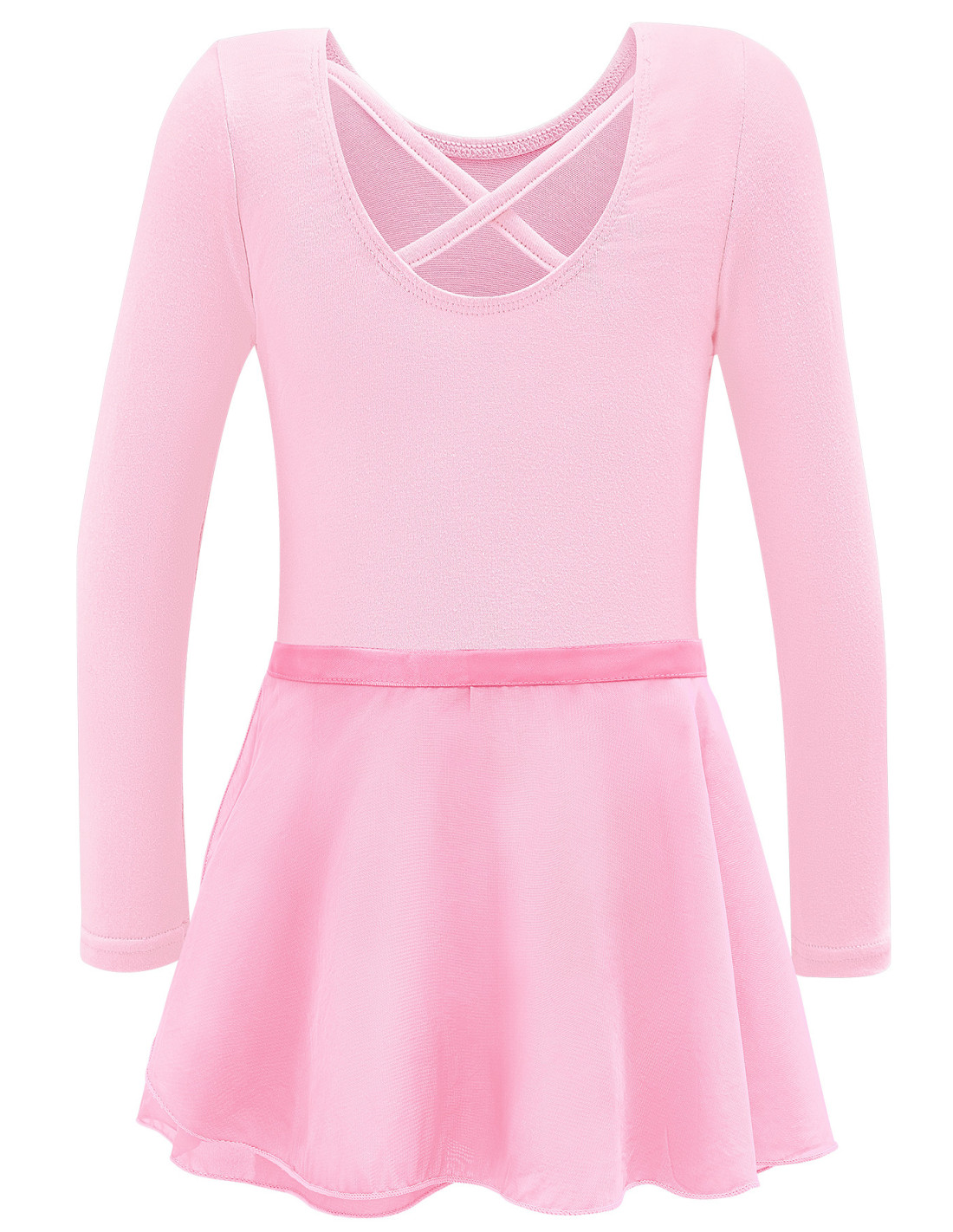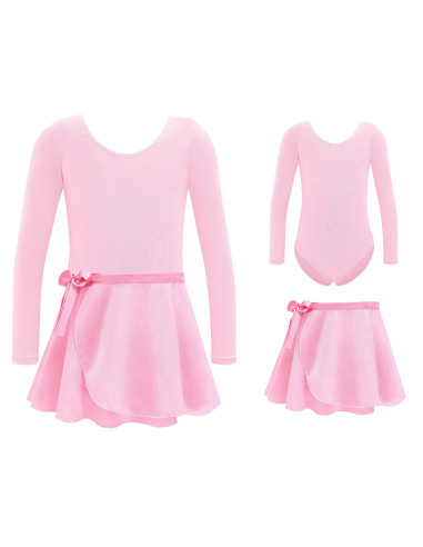 Profesjonalne dziewczęce body gimnastyczne z długim rękawkiem i spódniczką.