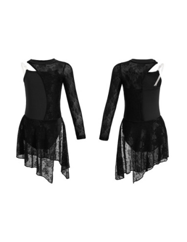 BODY BALETOWE CZARNE ZE SPÓDNICZKĄ KORONKOWE STRÓJ DO TAŃCA BALETU