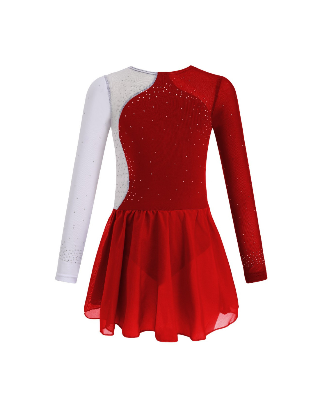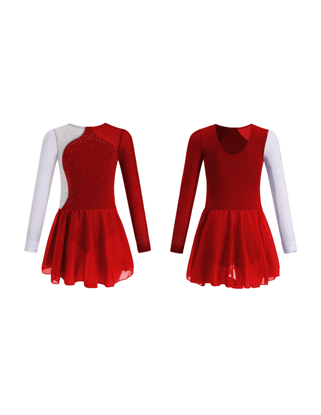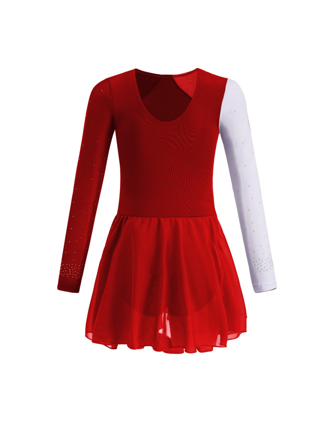 ⭐ Body taneczne czerwono-białe z długim rękawem, cyrkoniami i tiulową spódniczką !