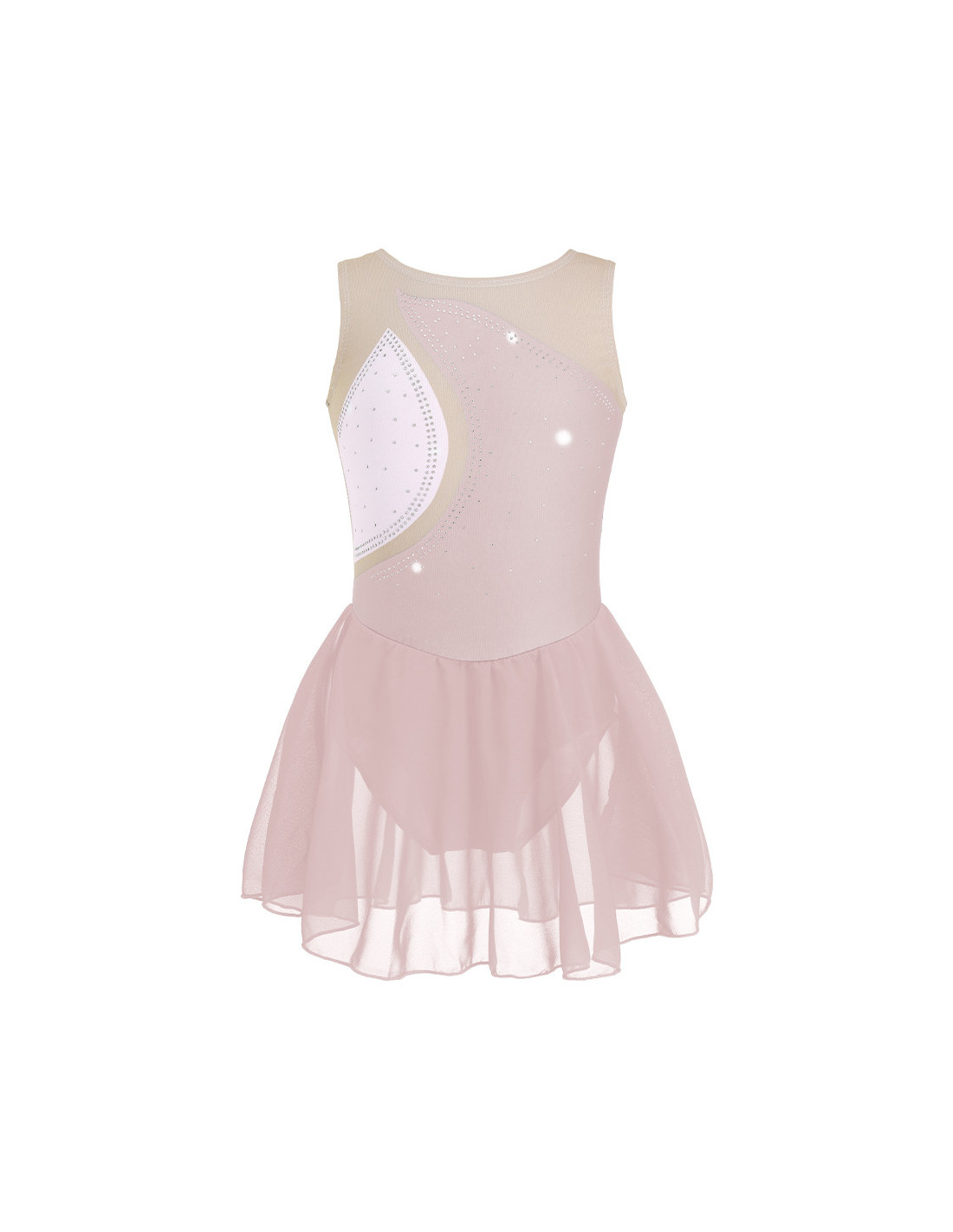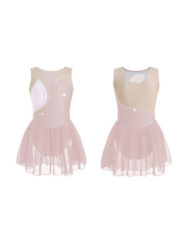 BODY BALETOWE WYSTĘPOWE ZE SPÓDNICZKĄ TIULOWĄ STRÓJ DO TAŃCA BEŻOWE ROZ