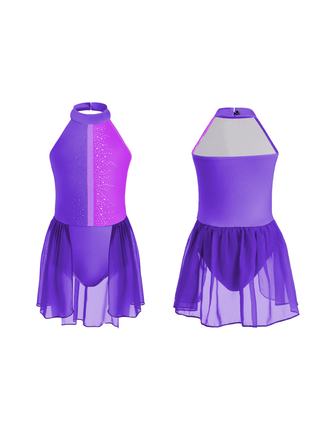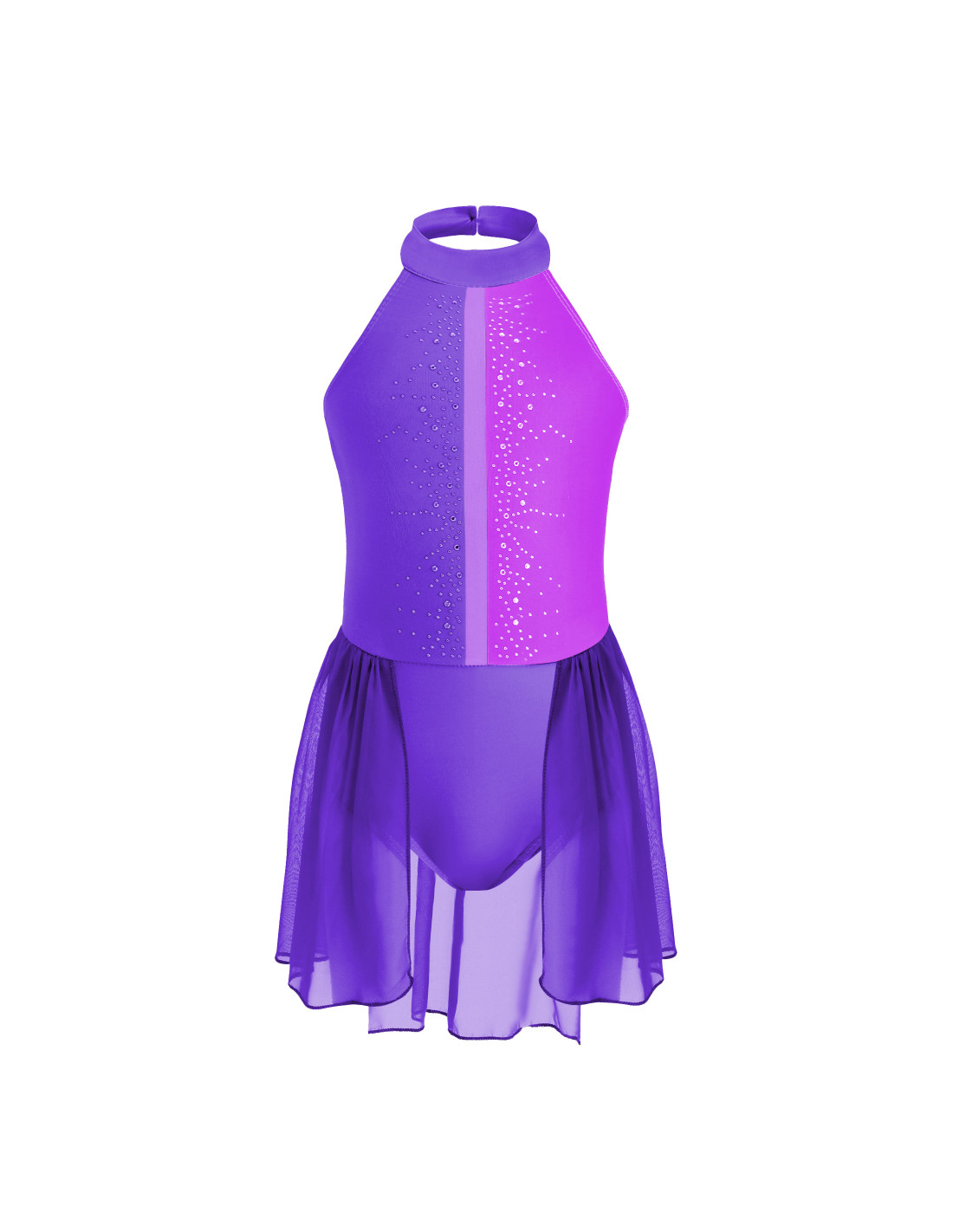 BODY BALETOWE Z TIULOWĄ SPÓDNICZKĄ FIOLETOWE STRÓJ DO TAŃCA BALETU