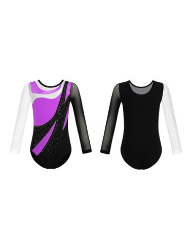 ⭐ Body baletowe z cyrkoniami - czarny + fioletowy + biały !