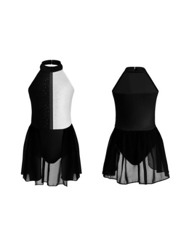 BODY BALETOWE Z TIULOWĄ SPÓDNICZKĄ CZARNO-BIAŁE STRÓJ DO TAŃCA BALETU