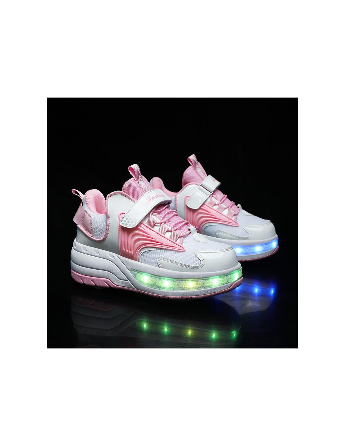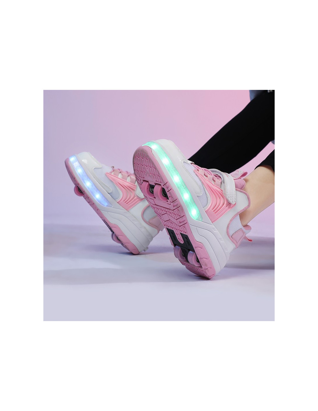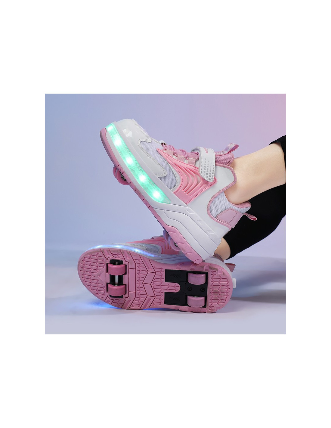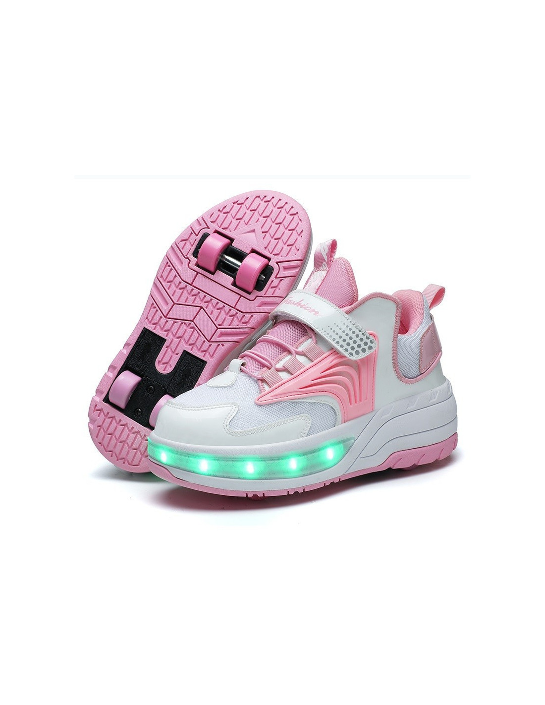 BUTOROLKI BUTY Z ROLKAMI ROLKI WROTKI BIAŁO-RÓŻOWE LED