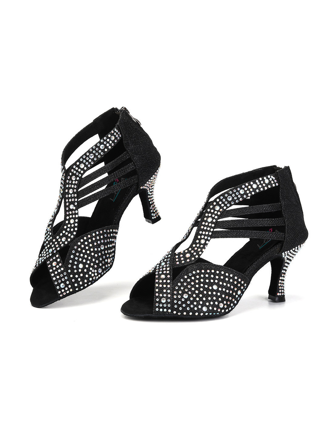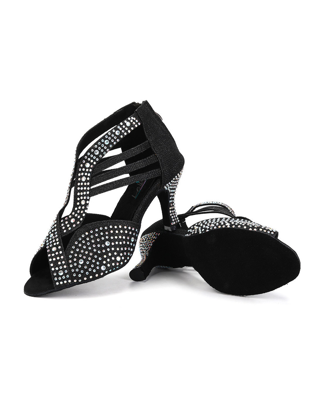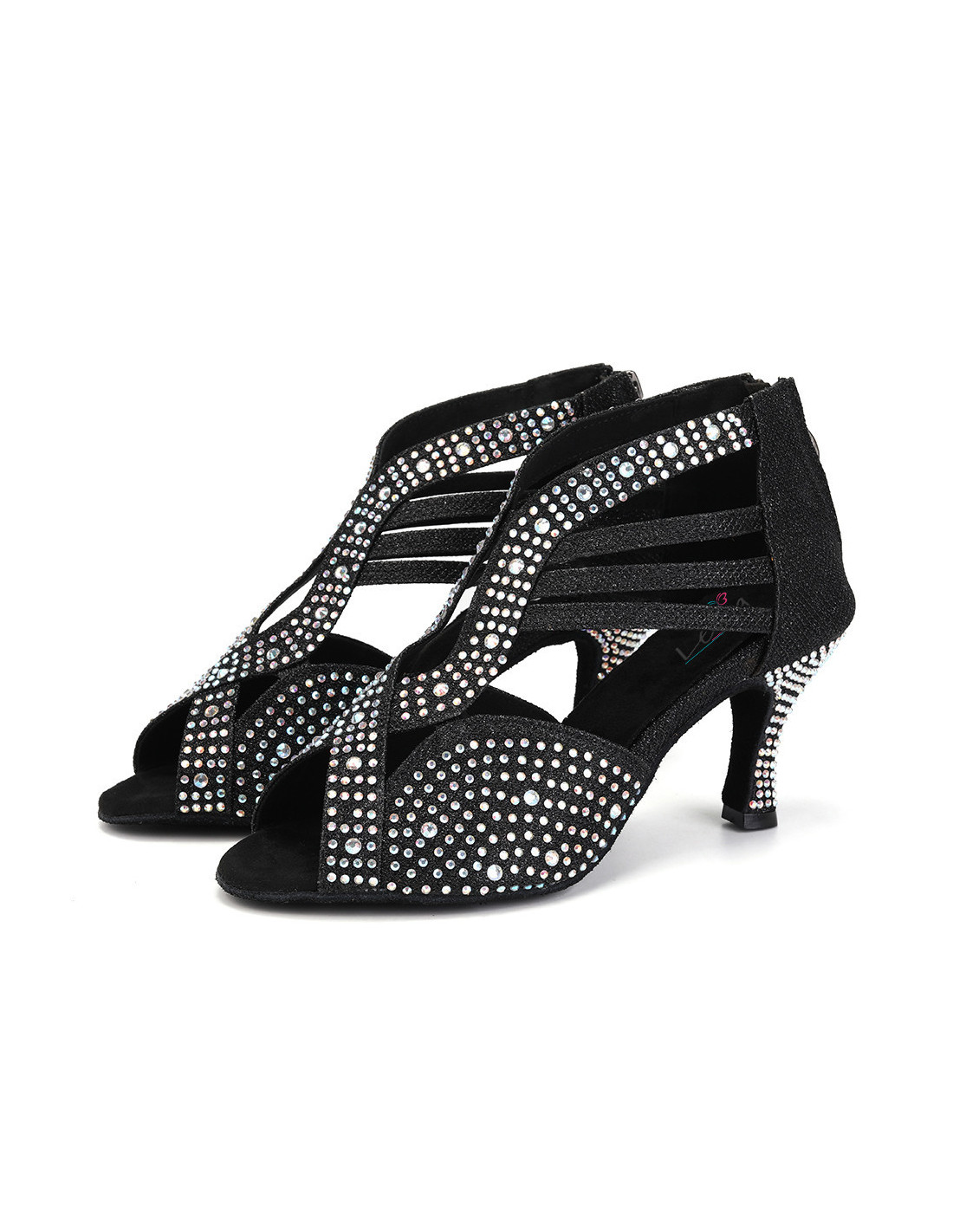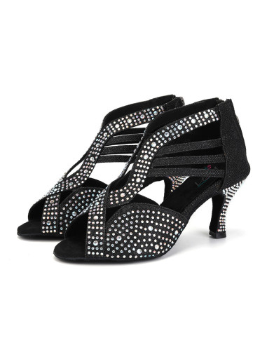 BUTY DO TAŃCA TANECZNE LATINO CZARNE ZDOBIONE 7,5cm