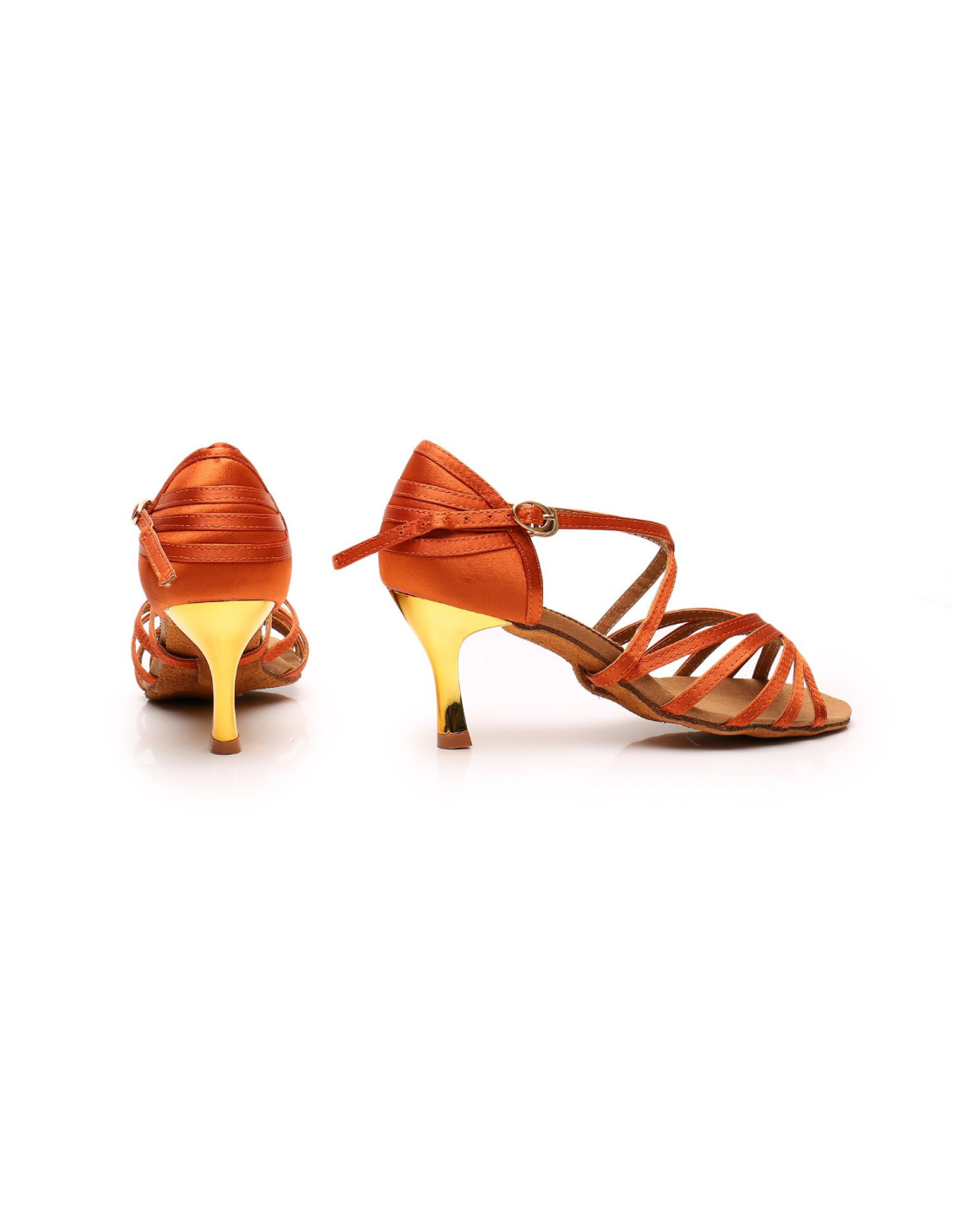 BUTY DO TAŃCA TANECZNE BRĄZOWE - ZŁOTY OBCAS 7,5cm