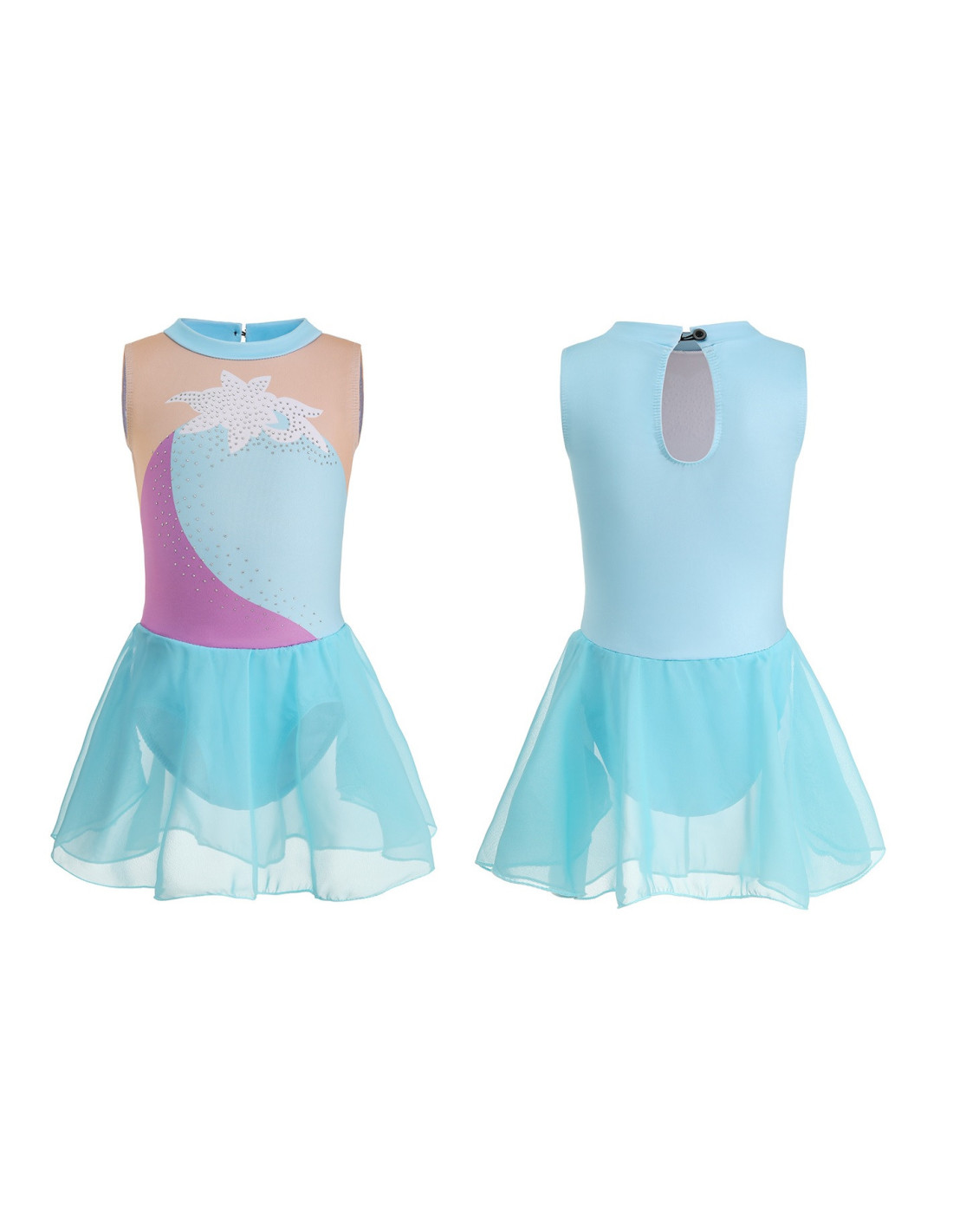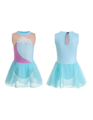 BODY BALETOWE STRÓJ DO BALETU ZE SPÓDNICZKĄ TIULOWĄ BŁĘKITNE CYRKONIE