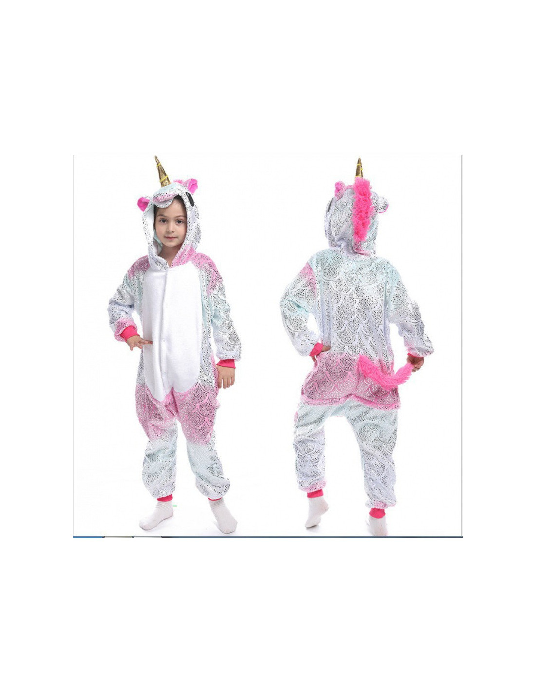 PIŻAMA ZŁOTY JEDNOROŻEC DLA DZIECI PLUSZOWY KOMBINEZON Z KAPTUREM