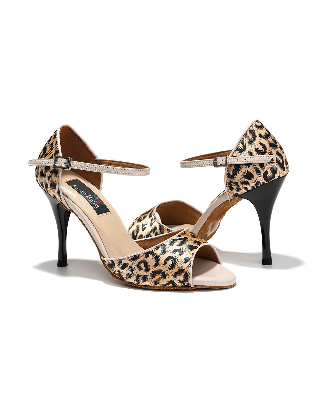 ✅ Efektowne damskie buty do tanga wykonane z wysokiej jakości satyny w modny wzór panterki.