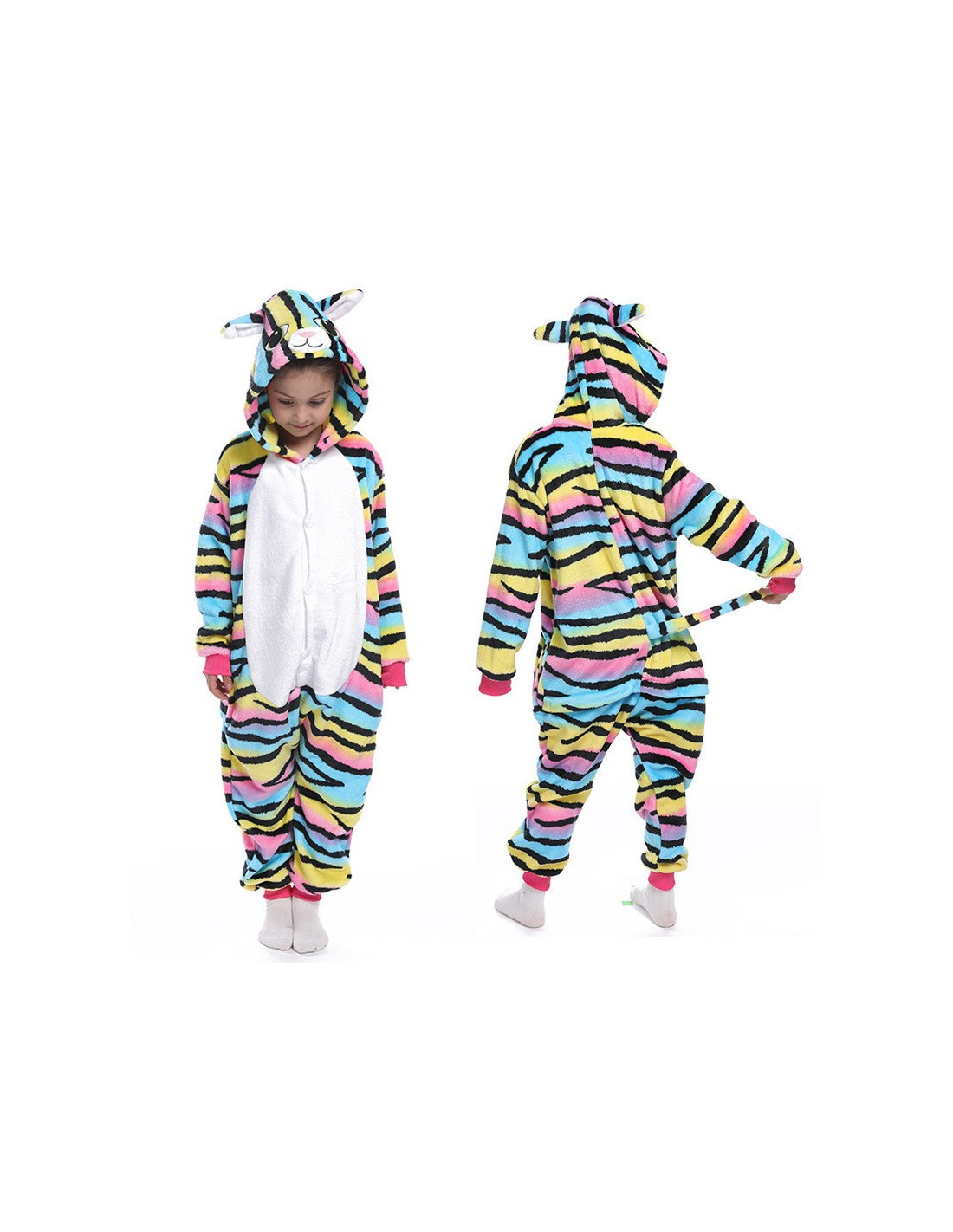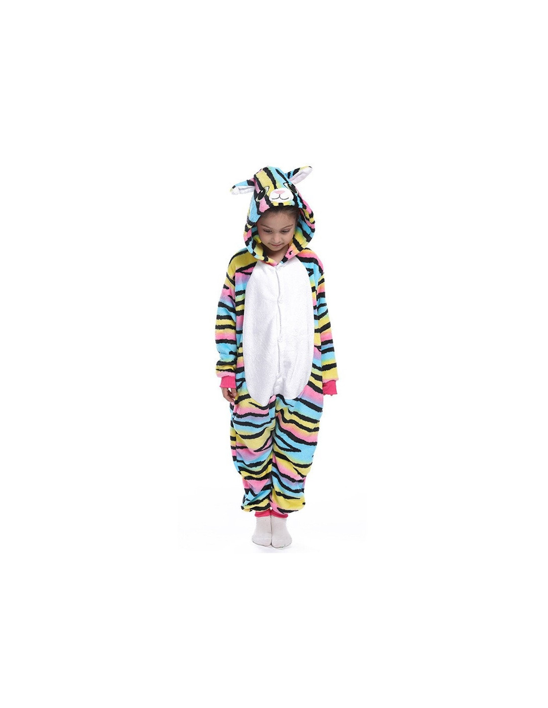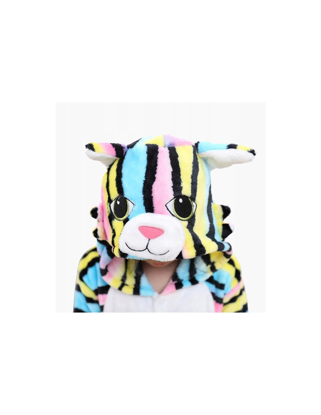 PIŻAMA KOMIBINEZON KOLOROWY KOTEK DLA DZIECI PLUSZOWY Z KAPTUREM