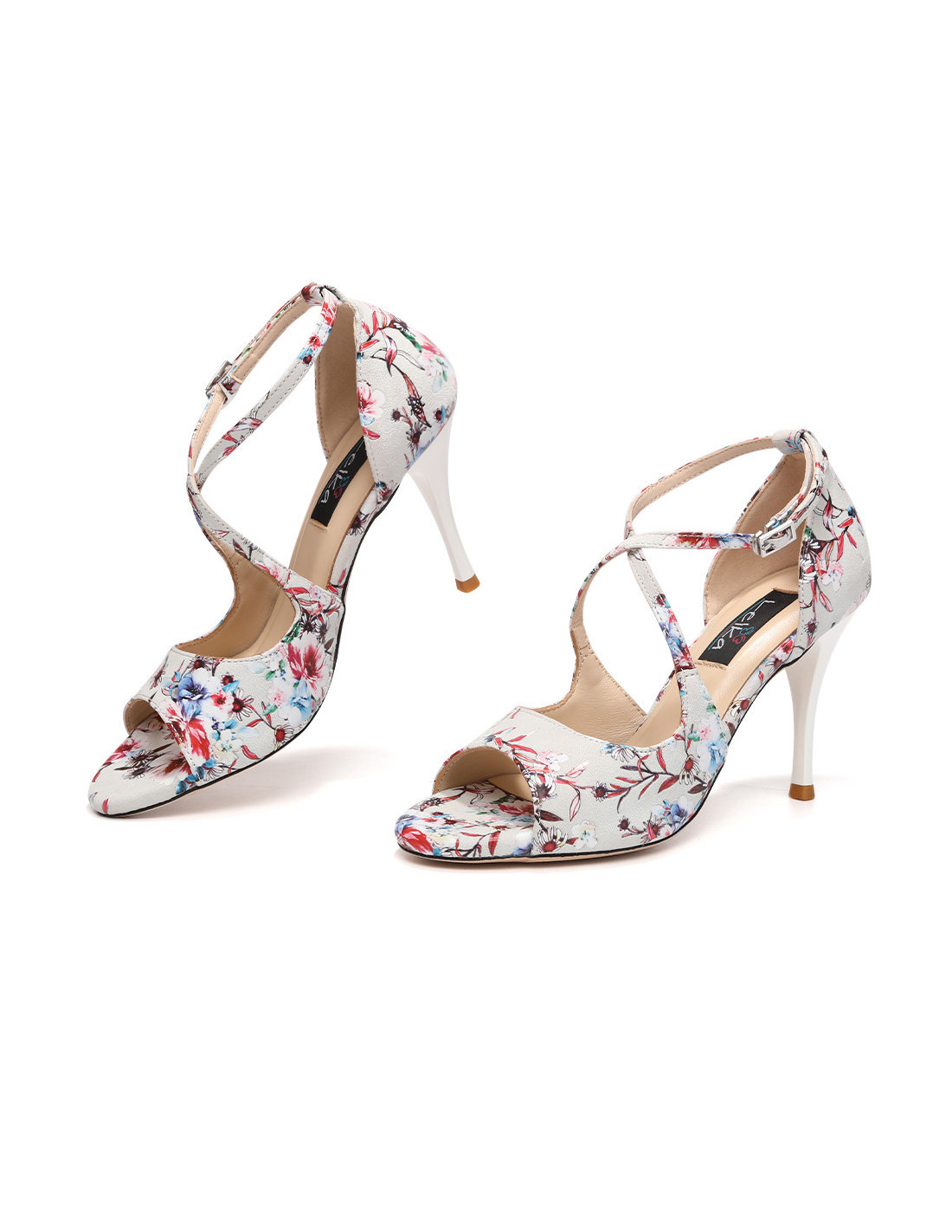 SKÓRZANE BUTY DO TAŃCA TANGO HIGH HEELS FLOWER 9cm rozmiar