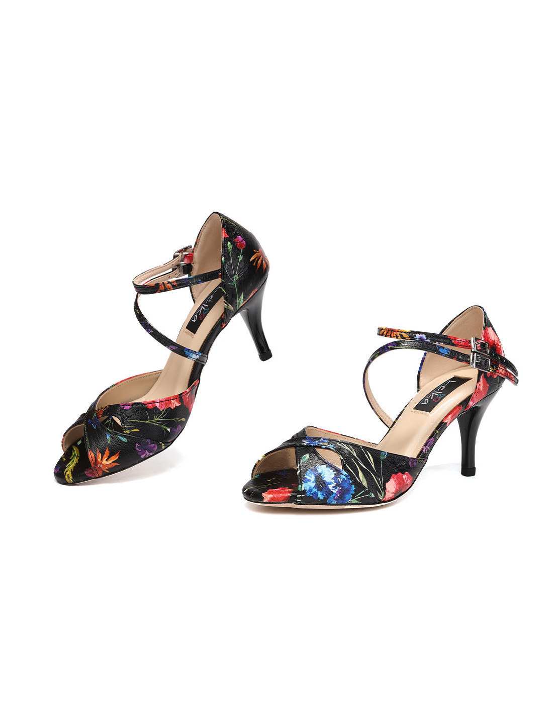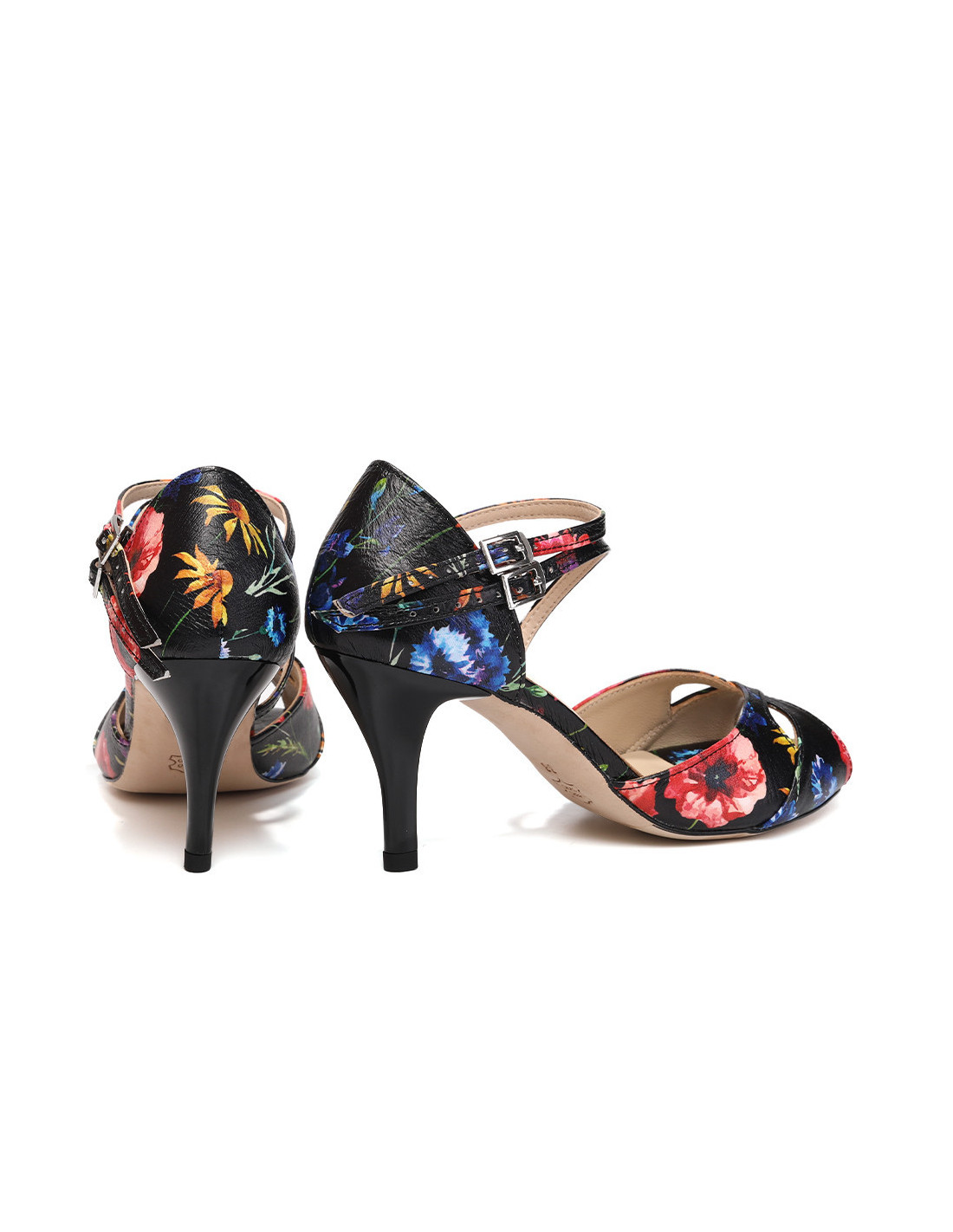 SKÓRZANE BUTY DO TAŃCA TANGO STYLOWE FLOWER 7,5cm rozmiar